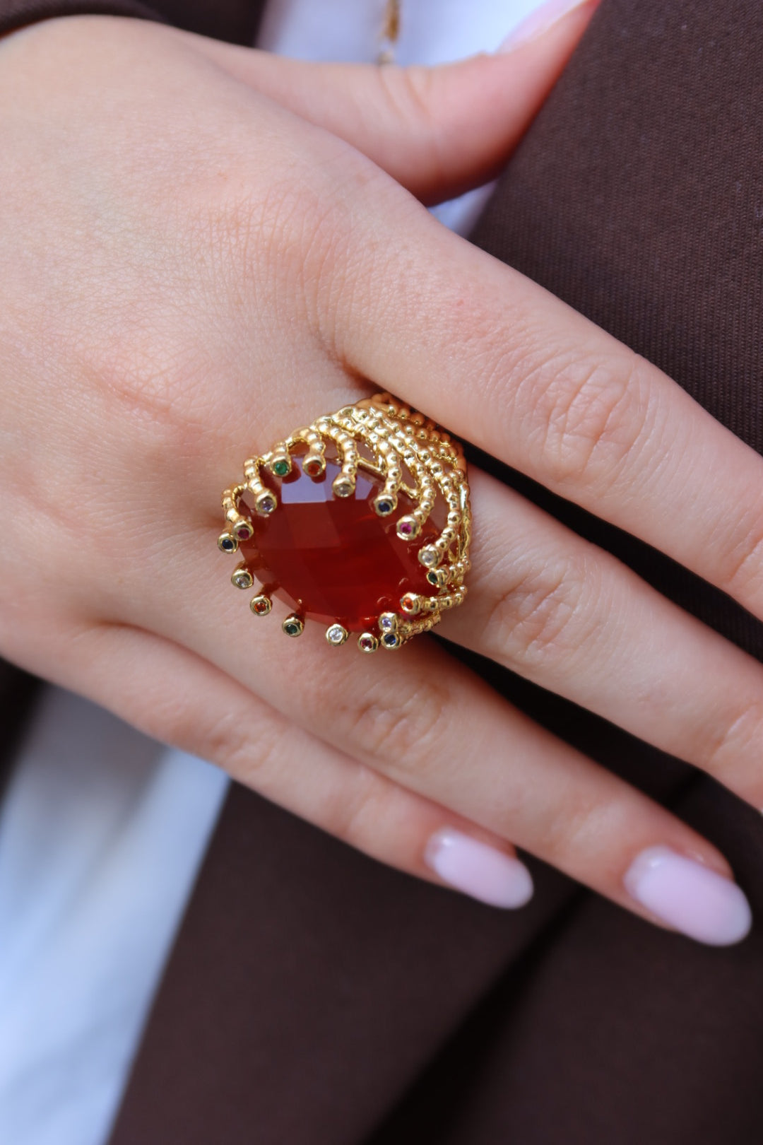 La bague mad rouge est en laiton et pierre naturelle.