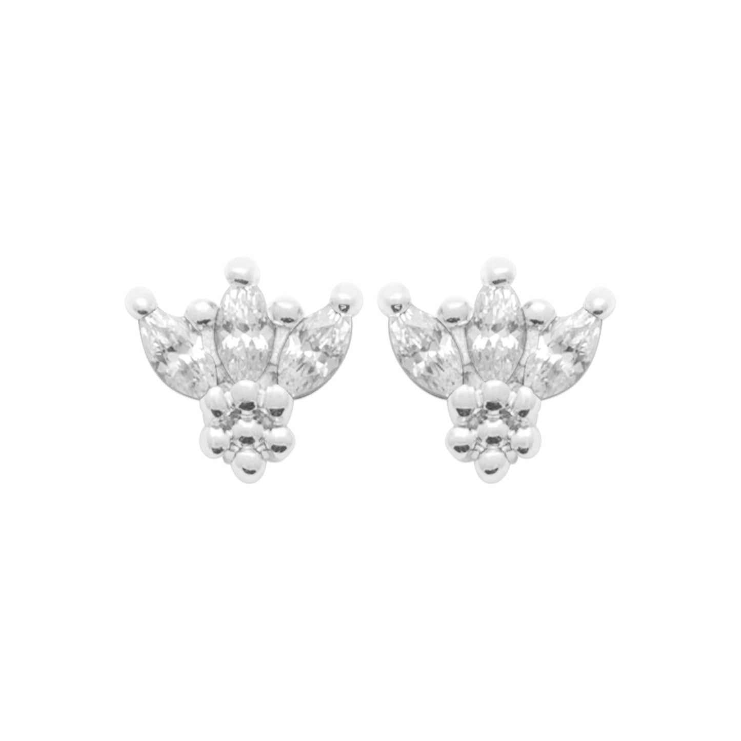 Puces lotus strass argent